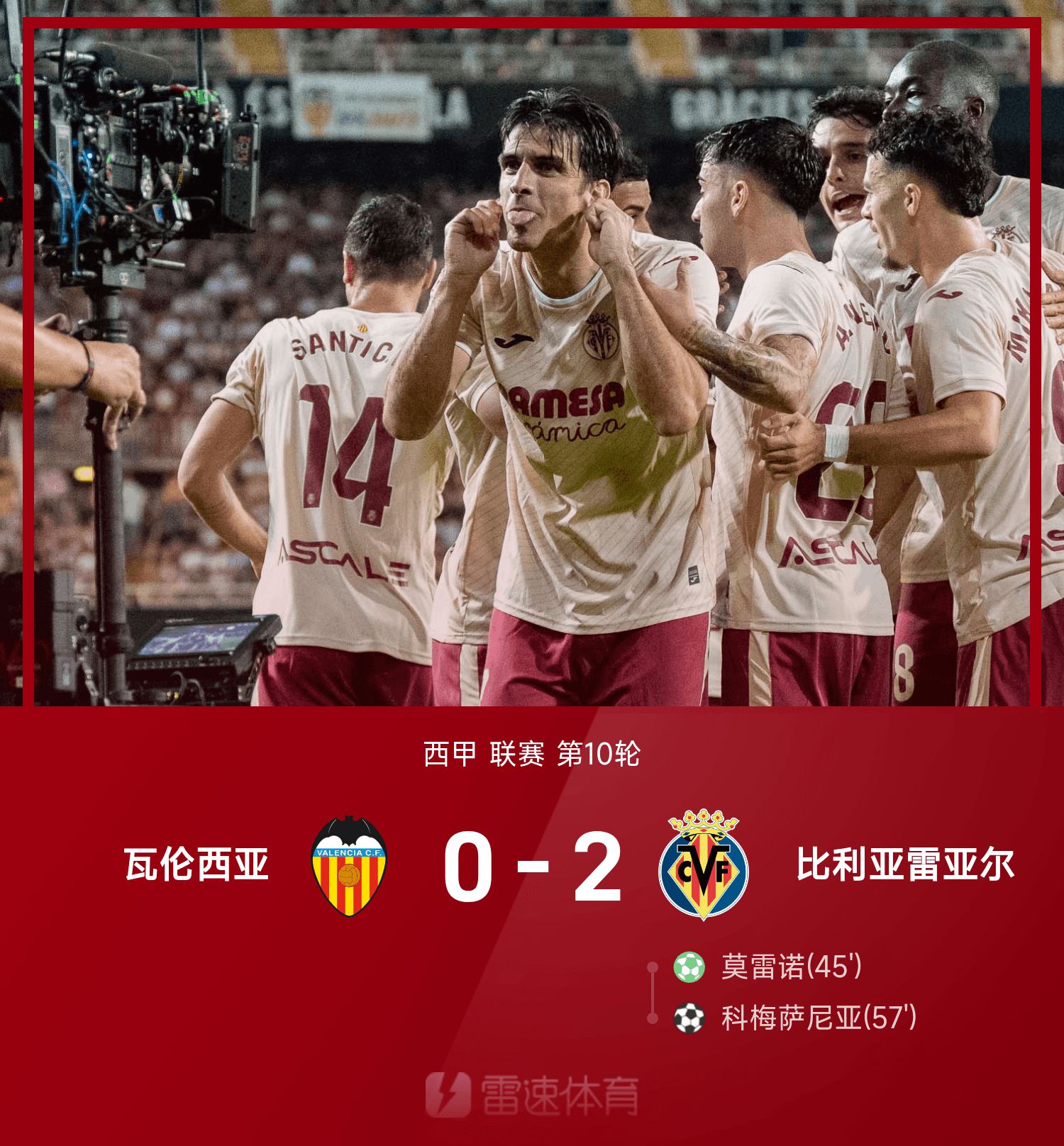 6686 Sports News le 26 octobre Au 10ème tour de la saison 25/26 de Liga, Villarreal a battu Valence 2-0. À la 45e minute, Moreno a marqué un point et a tiré lui-même le penalty, marquant le 300e match ; à la 57e minute, Comesagna a enchaîné avec un tir pour sceller la victoire.