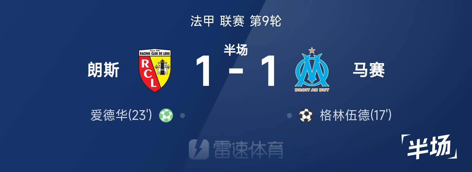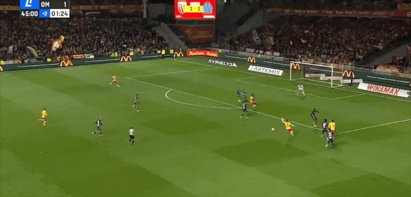 Mi-temps de Ligue 1 : Greenwood marque, Edouard égalise sur penalty, Marseille 1-1 Lens