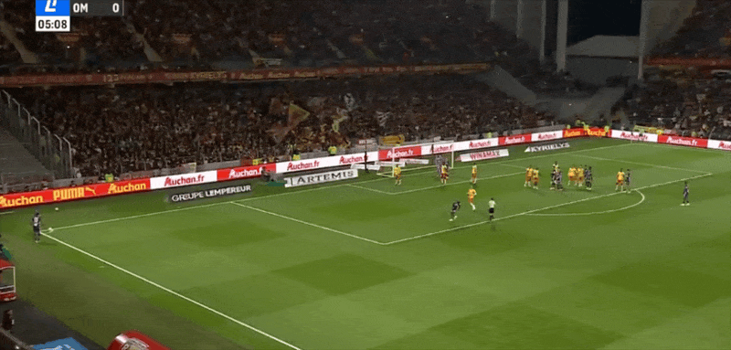 6' Marseille a attaqué avec un ballon sur la touche, Greenwood a raté le tir devant le but et a été signalé hors-jeu
