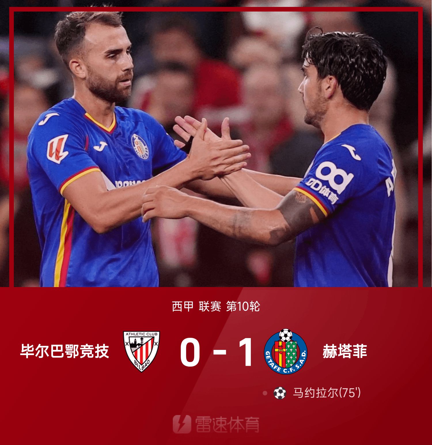 6686 Sports News le 26 octobre Lors de la 10ème journée de la saison 25/26 de Liga, en première mi-temps, aucune des deux équipes n'a réalisé de exploit. En seconde période, à la 75e minute, l'impasse était enfin débloquée. Mayoral a enchaîné avec un tir et a marqué. En fin de compte, Getafe a battu Bibao 1-0 et le match s'est terminé.