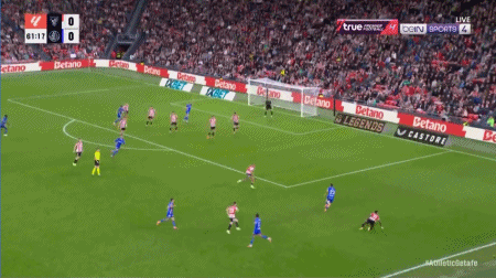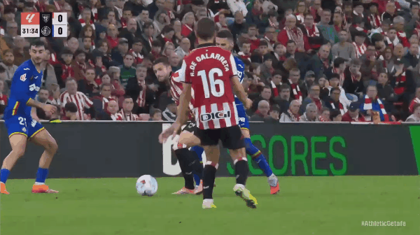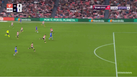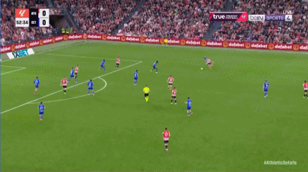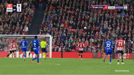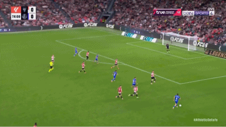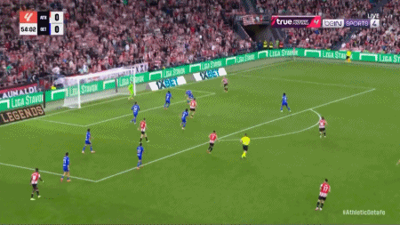 54' Guruzeta a dirigé le ballon vers le but dans la zone des trois secondes, mais le ballon a été bloqué par le gardien de but