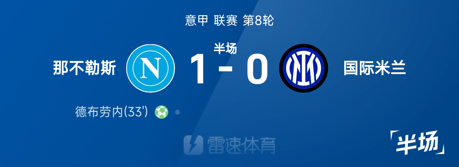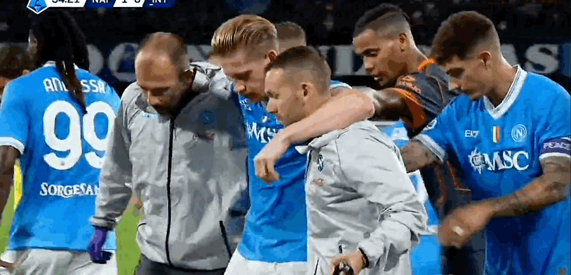 Mi-temps de Serie A : De Bruyne abandonne blessé après un penalty, Naples 1-0 Inter Milan