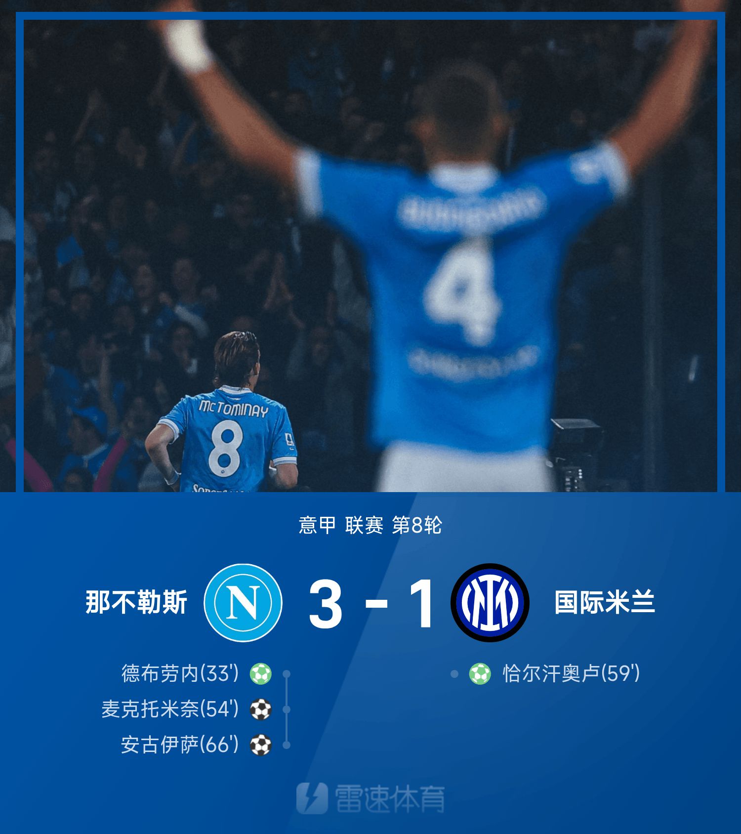 6686 Sports 26 octobre Au 8ème tour de la saison 25/26 de Serie A, Naples a battu l'Inter Milan 3-1. Dans la première moitié du match, De Bruyne s'est retiré blessé après avoir exécuté un penalty à 12 mètres. Dans la seconde moitié du match, McTominay et Anguisa ont marqué successivement, tandis que Calhanoglu a marqué un but de 12 verges pour l'Inter Milan.