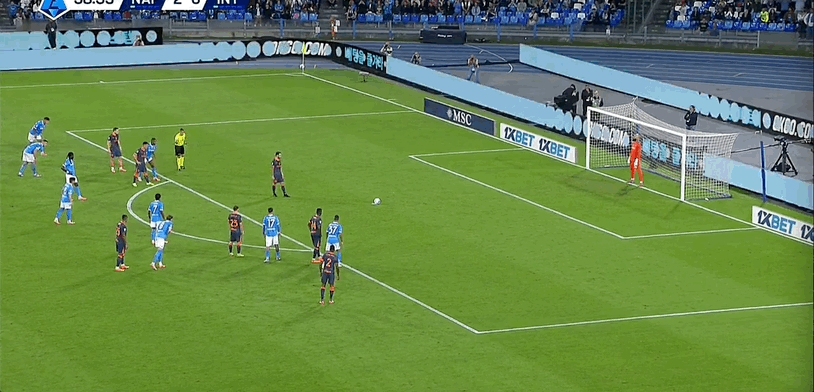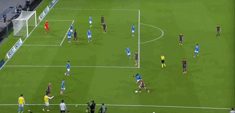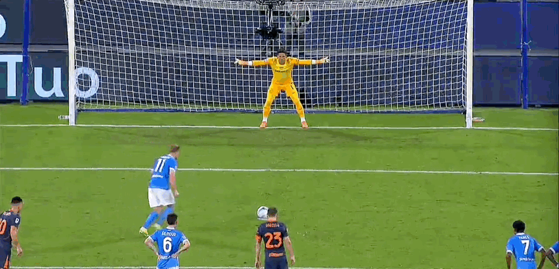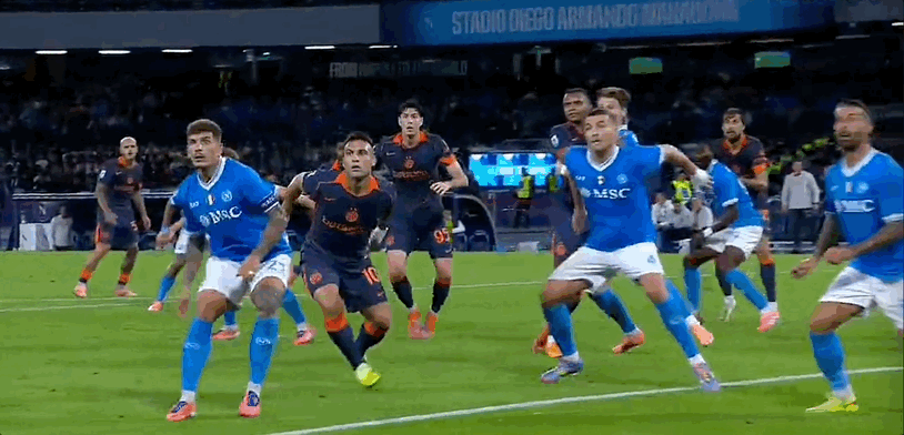 15' Lautaro a eu une excellente occasion dans la zone des trois secondes et son tir a été arrêté par le gardien de Naples