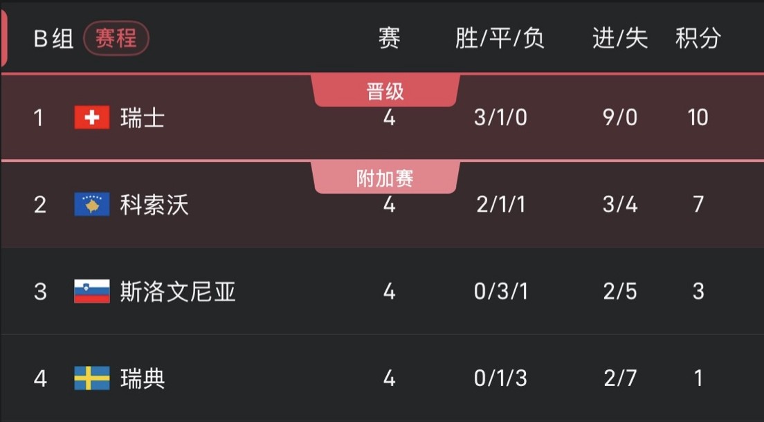 La Suisse peut se qualifier si elle bat la Suède et si le Kosovo ne parvient pas à vaincre la Slovénie.