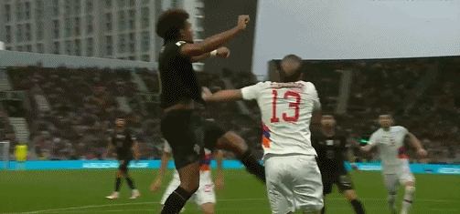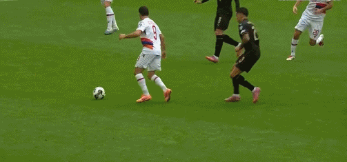 La volée de 40'B devant le but a été bloquée par le défenseur et hors de la ligne de fond