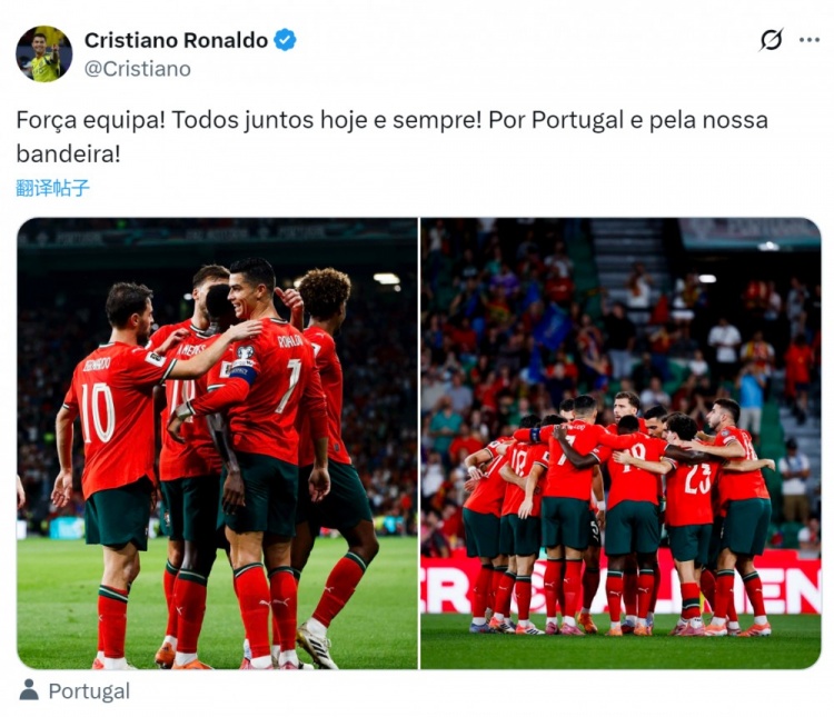 C Ronaldo a écrit : "Allez Portugal ! Aujourd'hui et pour toujours, nous sommes unis ! Combattez pour le Portugal, pour notre drapeau !"