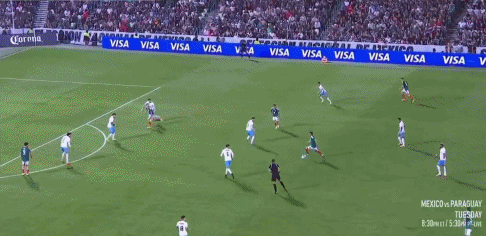 35' Alvarado a passé le ballon, et Jimenez s'est retourné et a dribblé le ballon mais n'avait aucune puissance et ne représentait pas une menace