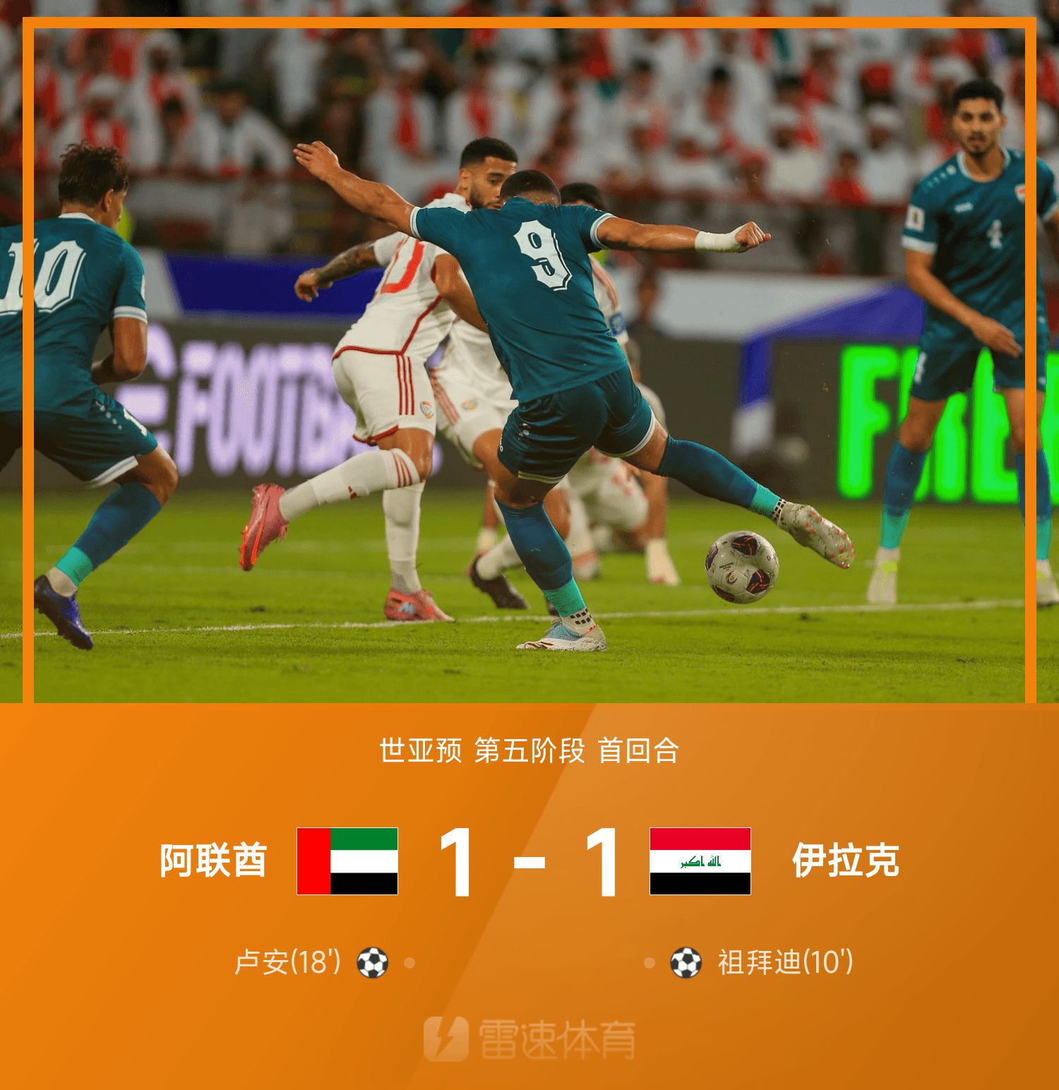 6686 Sports News le 14 novembre Au premier tour de la cinquième étape des éliminatoires mondiaux asiatiques 2026, les Émirats arabes unis ont affronté l'Irak. À la 10e minute, Zubaidi a marqué d'un balayage devant le but. À la 18e minute, Ramadan a aidé Luan et a marqué, aidant les Émirats arabes unis à égaliser le score 1-1. Par la suite, les deux équipes ont échangé attaque et défense. Le gardien des Émirats arabes unis Issa a réalisé de superbes arrêts à plusieurs reprises et le score sur le terrain n'a jamais été modifié. À la 6e minute des arrêts de jeu, Jimenez a tiré un coup franc et a aidé Lucas à marquer, mais il a été déclaré invalide pour hors-jeu. Au final, les Émirats arabes unis ont fait match nul 1-1 contre l'Irak.
