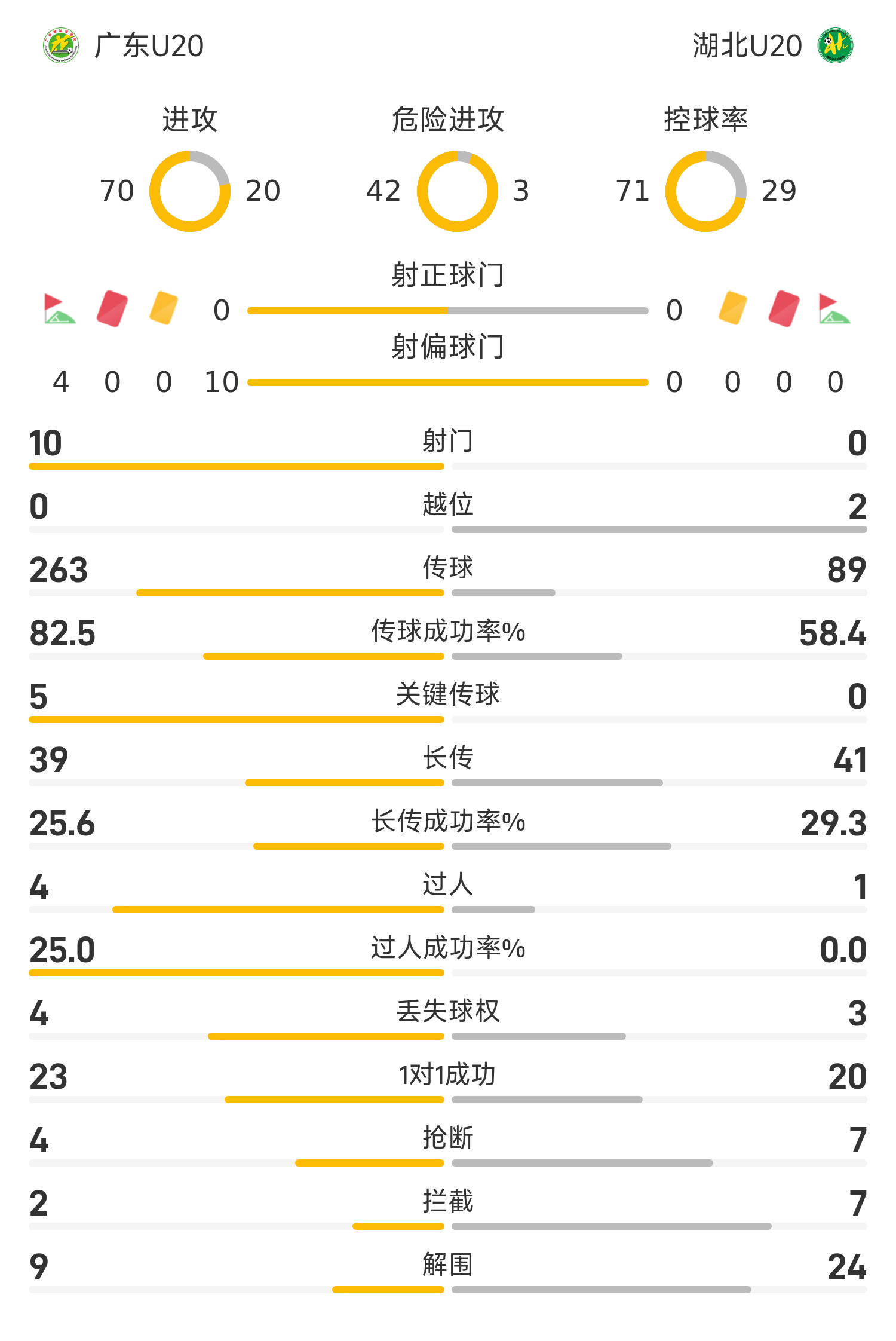 Liste de départ du Guangdong U20: 22-Yuan Jianrui, 4-Li Mingjie, 55-Huang Keqi, 3-Yuan Zinan, 5-Hai Jieqing, 6-Luan Cheng, 59-Mei Shuaijun, 16-Zhang Zhixiong, 7-Zhong Wen, 57-Wang Ziyang, 47-Huang Zishun