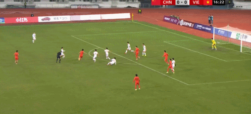 33' L'équipe chinoise a envoyé une passe menaçante de la gauche vers la surface de réparation, et le joueur débordant devant le but était un pas plus lent