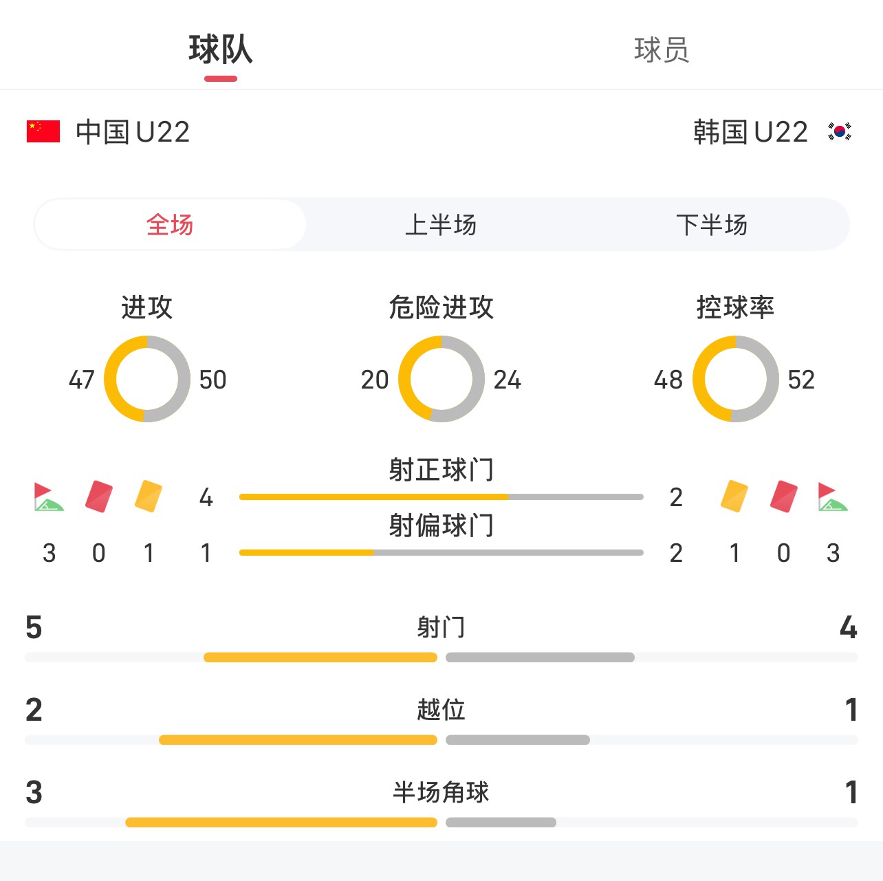 Statistiques complètes du match de la Panda Cup U22 Chine contre Corée du Sud: score de but 5-4, taux de dribble 50-50