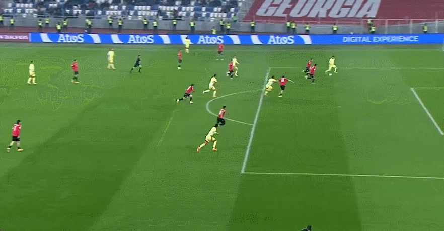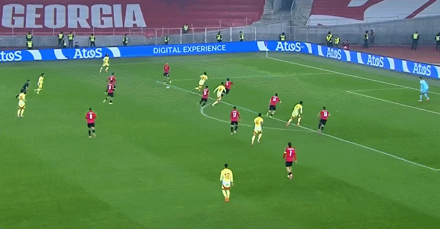 À la 7ème minute du match, Torres a fait irruption dans la zone des trois secondes pour passer le ballon dans la surface de réparation, obligeant Goholishvili à handballer. L'Espagne a donc eu une chance de 12 mètres. Ovasabal a ensuite écopé d'un penalty de 12 mètres et a marqué le premier but. À la 34e minute, Torres s'est avancé pour recevoir une passe croisée d'Oyarzabal et a frappé le coin le plus éloigné, aidant l'Espagne à prolonger son avance à 3-0.