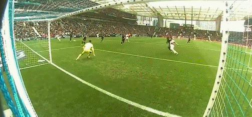 La volée de 40'B devant le but a été bloquée par le défenseur et hors de la ligne de fond