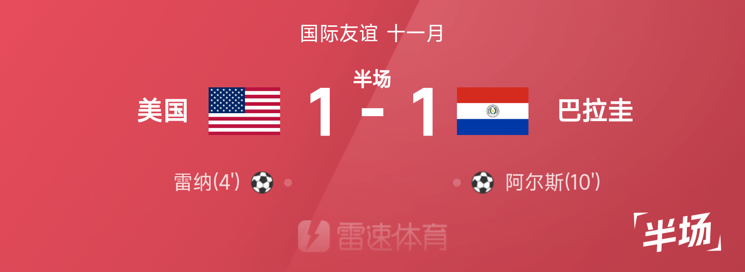 Mi-temps d'un match amical: Reina blitz, Als égalise, États-Unis temporairement 1-1 Paraguay