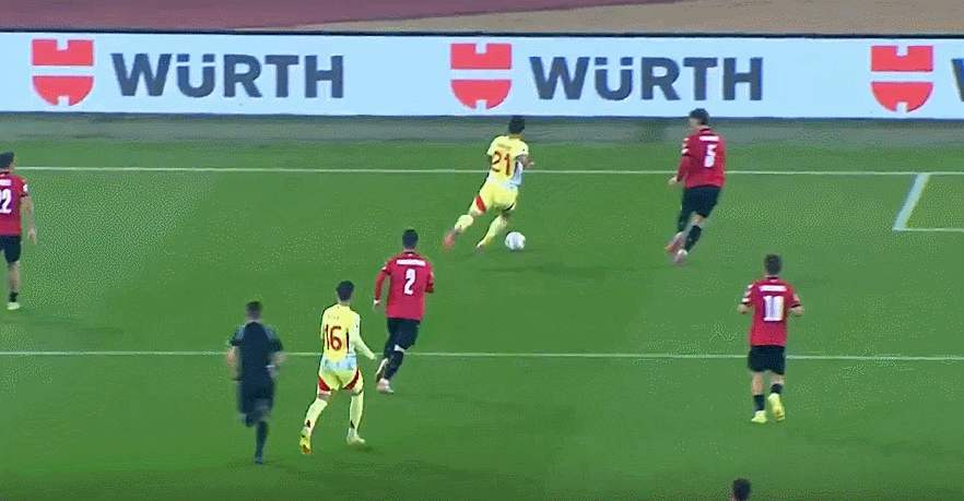 8' Oyazava a reçu la passe dans la zone des trois secondes et a marqué le but avec son pied gauche, et le ballon a légèrement raté le but. post