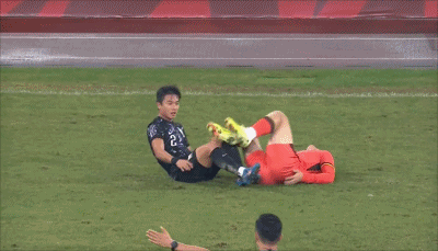 80' Chen Zeshi a effectué des mouvements supplémentaires après être tombé au sol, et l'arbitre a émis un carton d'avertissement
