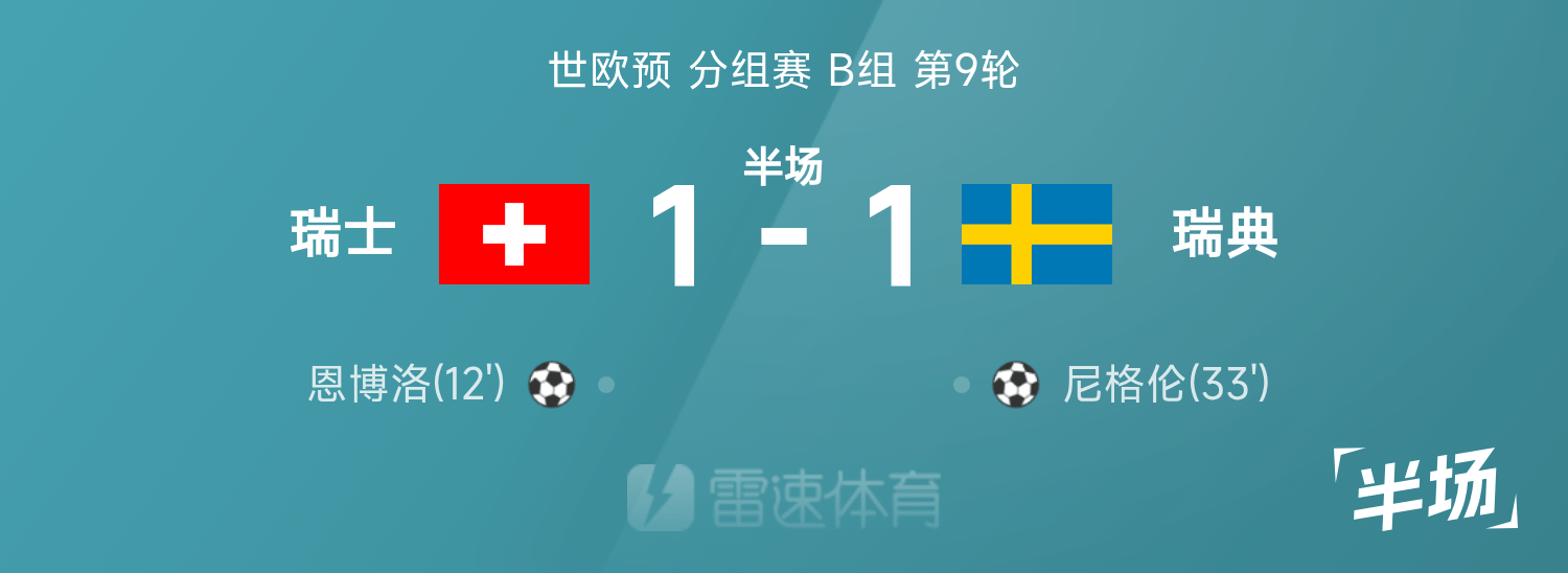 Mi-temps des éliminatoires européennes : Embolo marque, Nygren égalise, la Suisse temporairement 1-1 Suède