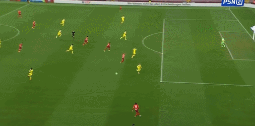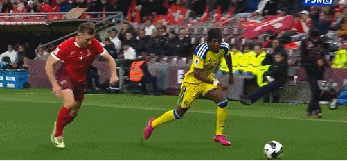 31' La Suisse a menacé de passer le ballon dans la surface de réparation, mais la tête de Widmer a raté le cadre