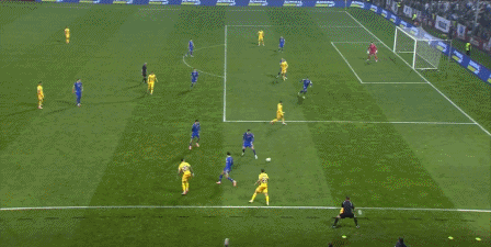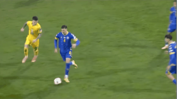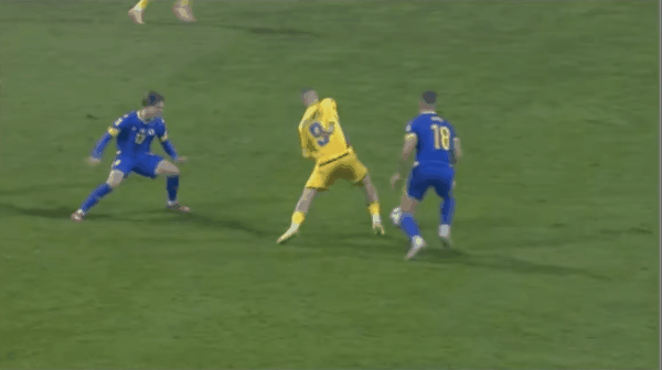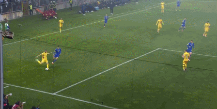 45+1' Le coup franc de Bajlatarevic a été tiré de l'extérieur au point mort, et le ballon a été sauvé courageusement par le gardien de but