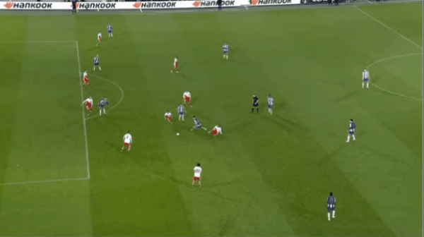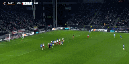 31' Pepe a reçu une passe du pied arrière de son coéquipier à la limite de la zone des trois secondes, puis a envoyé le ballon de volée vers le but. Le ballon a raté le poteau et est sorti des limites du terrain