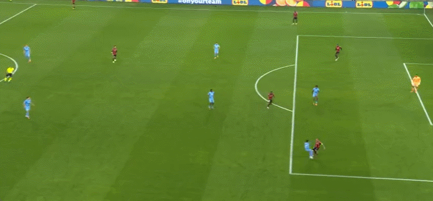 6' Genter a dégagé le ballon avec son gros pied en dehors de la zone de trois secondes, et le ballon a touché Boga et a rebondi sur le post