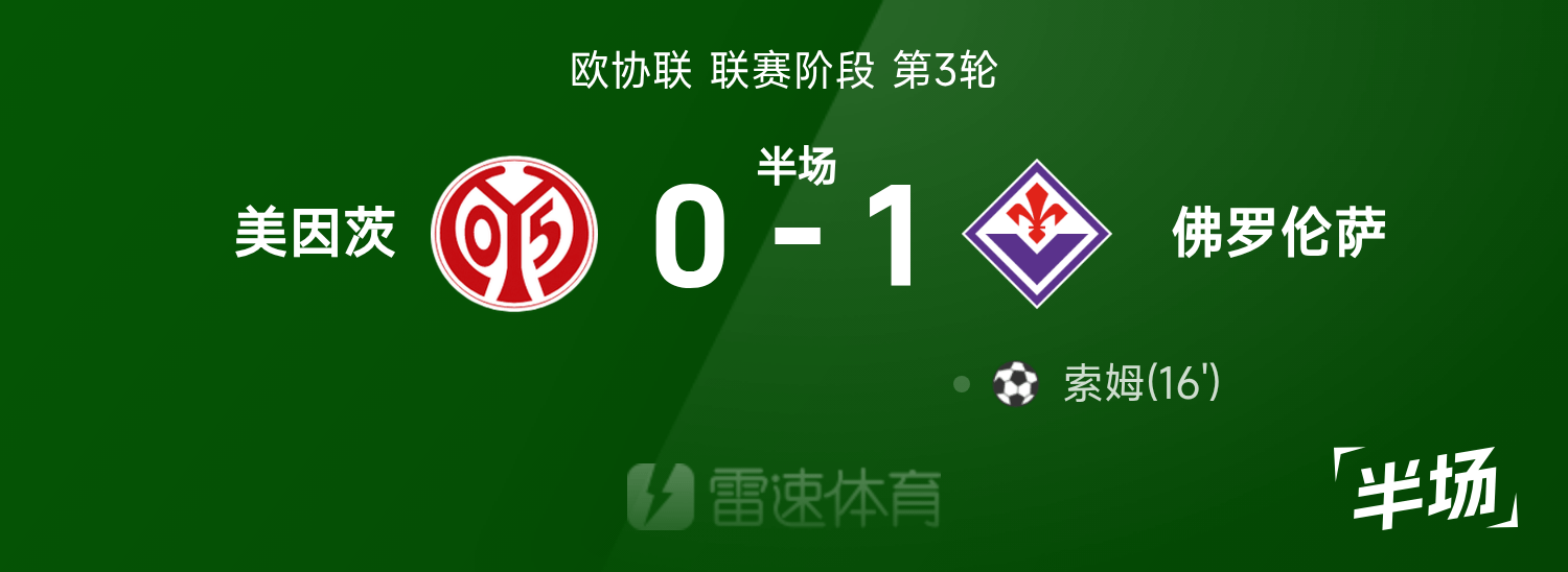 Mi-temps de l'UEFA : Som marque, Mayence 0-1 Fiorentina