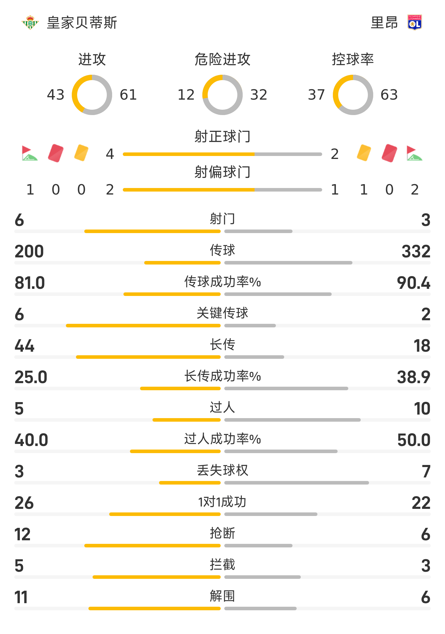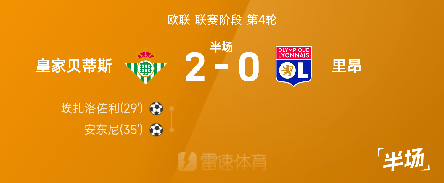 Mi-temps de la Ligue Europa : Anthony a marqué seul, le Real Betis temporairement 2-0 Lyon