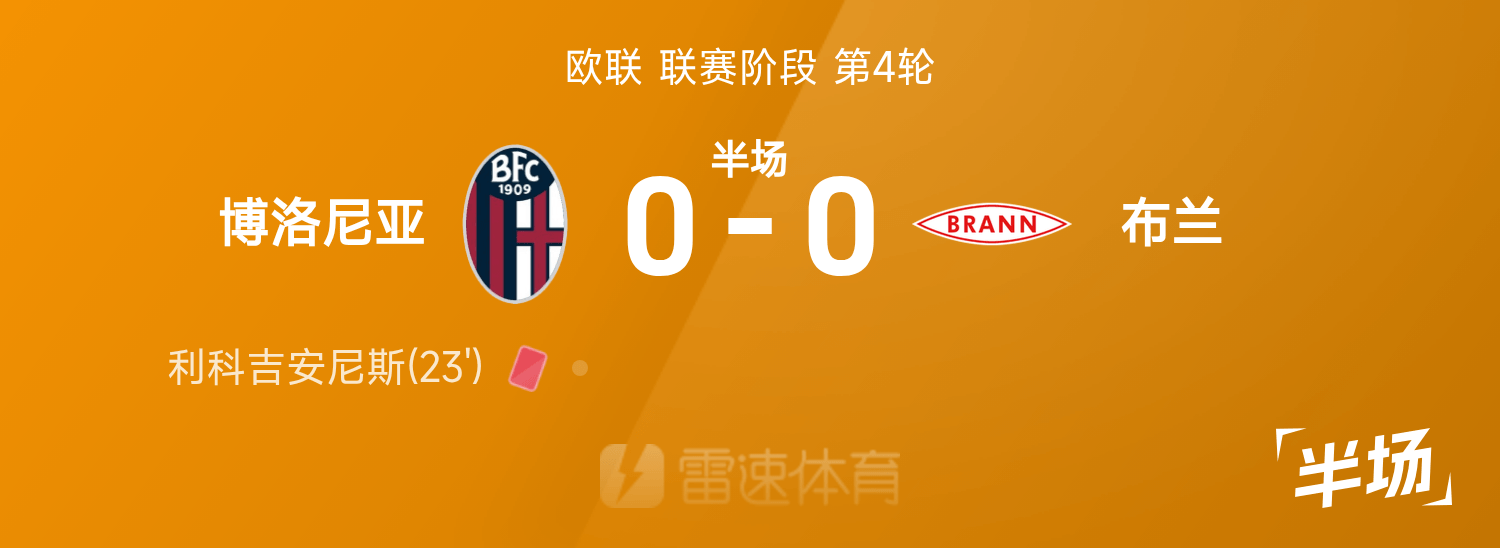 Mi-temps de la Ligue Europa : Rico Giannis est devenu rouge de manière inattendue, Bologne à dix temporairement 0-0 Bran