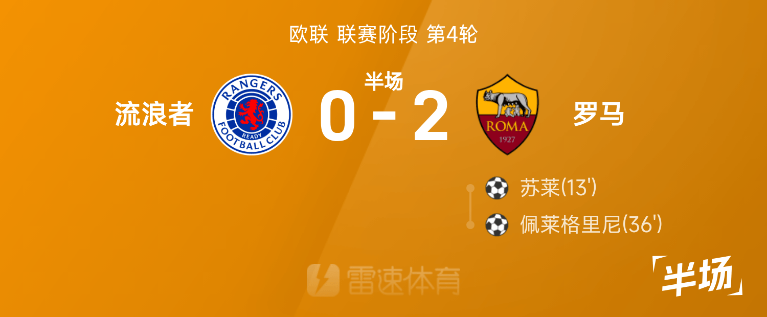 Mi-temps de la Ligue Europa : Sule et Pellegrini ont marqué, Rangers 0-2 Roma