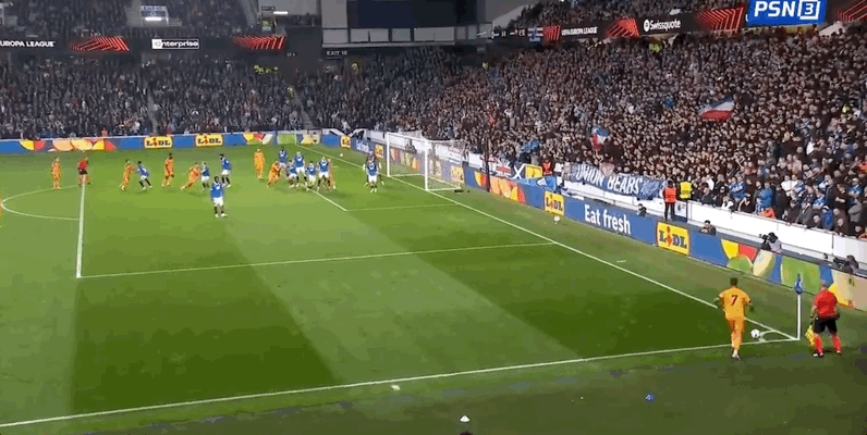 22' Sule a décoché un tir de l'extérieur et le gardien des Rangers a sauvé le ballon depuis la ligne de fond