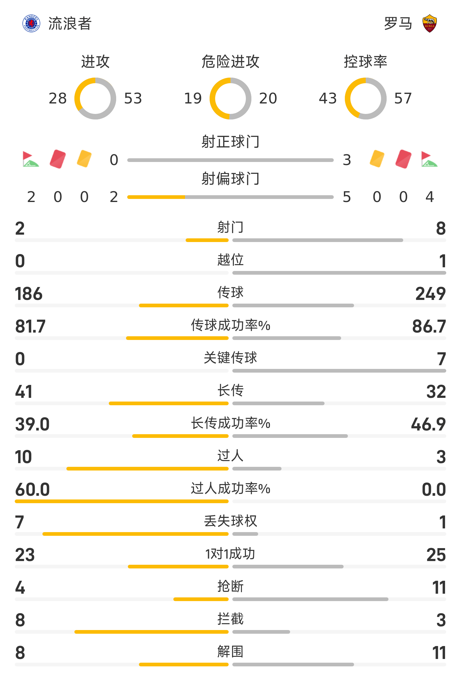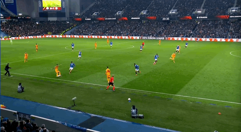Liste de départ des Rangers: 1-Butland, 2-Tavernier, 5-Soutar, 24-Giga, 43-Raskin, 8-Barron, 3-Alons, 23-Gasama, 47-Moore, 30-McGoma, 9-Chelmiti
