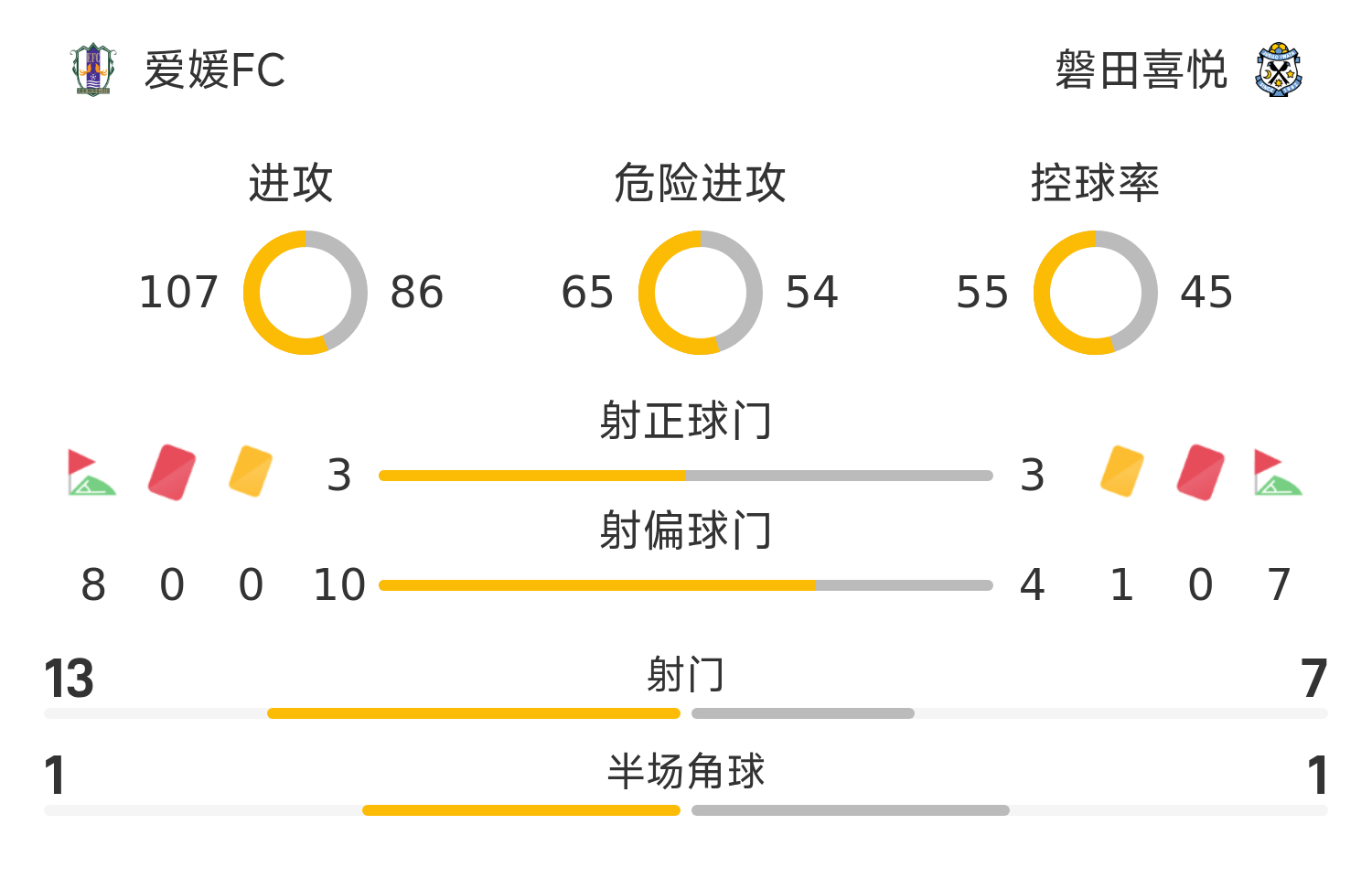 Liste de départ de l'Ehime FC: 36-Tsuji Shugo, 37-Ishio Roma, 19- Takaya Kuroishi, 25-Onki Yoshida, 44-Kimi Moriyama, 7-Soneda Tsumugi (70'10-Sato Ryo), 24-Koda Hideshog (70'40-Sugimori Kaoshi), 28-Maeda Fukusuke, 8-Fukasawa Yuta (81'15-Tsuruno Reiki), 13-Horiyomi Yuki (87'48-Yukitomo Shoya), 32-Fujimoto Yoshiki (81'17-Murakami Yuhi)