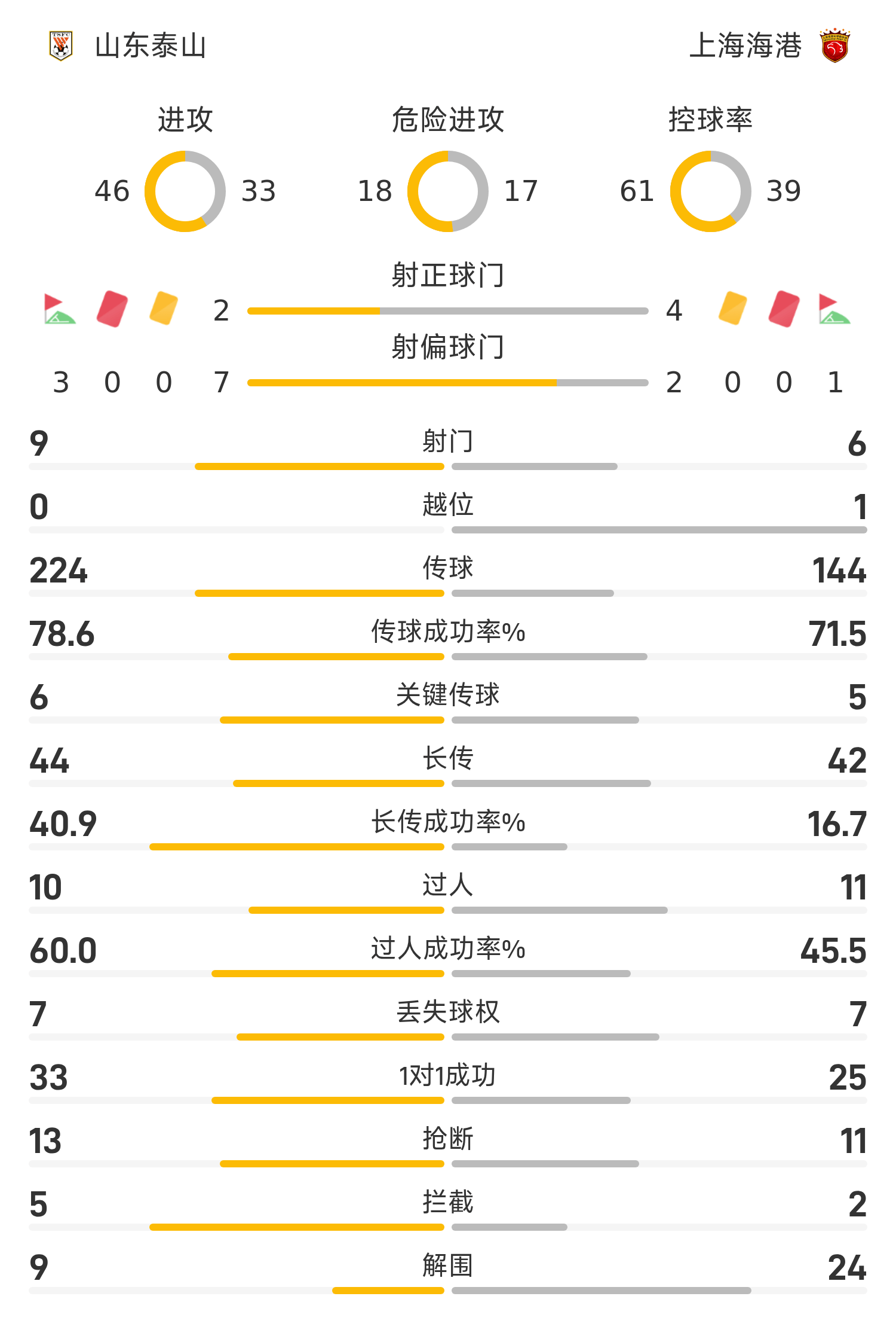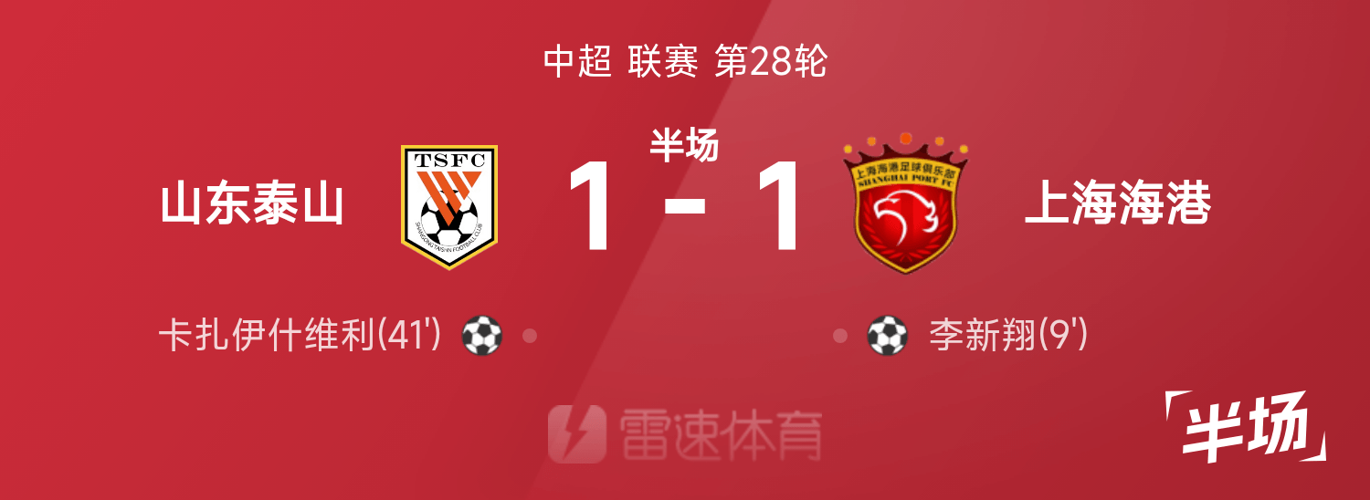 Mi-temps de la Super League chinoise : Li Xinxiang a marqué, Kaza a égalisé, Taishan temporairement 1-1 Haigang