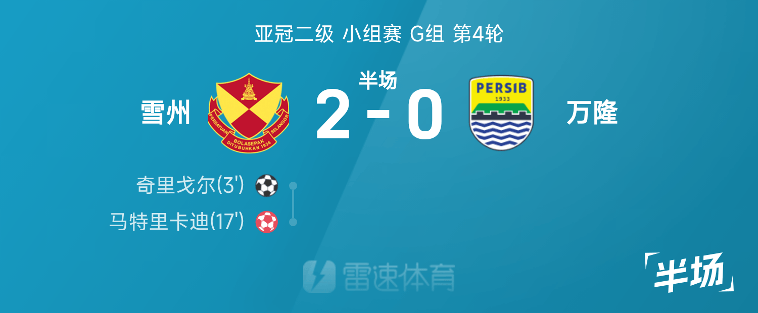 Mi-temps de la Ligue des champions de l'AFC niveau 2: Chirigor a fait un blitz, Selangor 2-0 Bandung