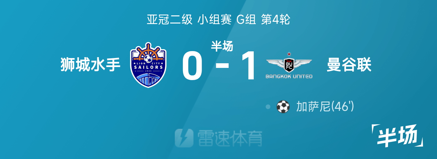 Deuxième mi-temps de la Ligue des Champions de l'AFC : Gassani a marqué dans le temps additionnel, Lion City Mariners temporairement 0-1 Bangkok United