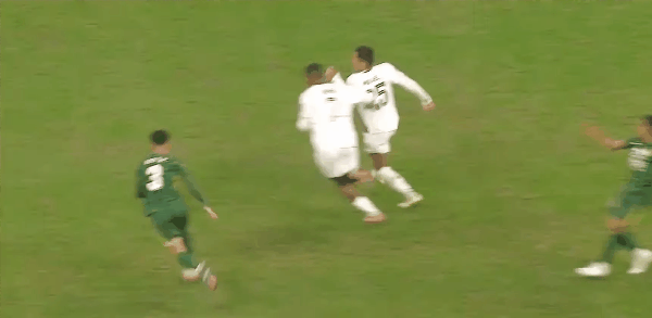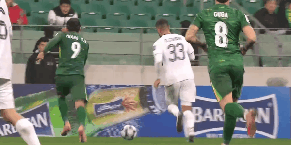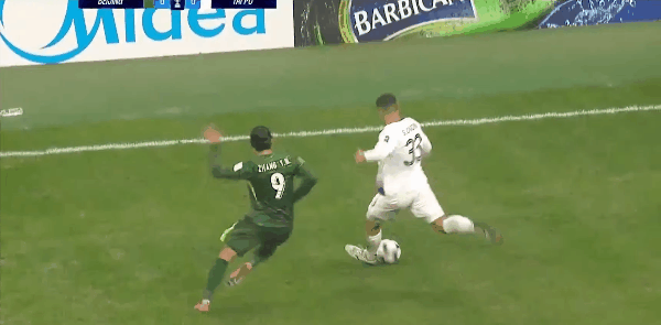 42' Zhang Yuning a été humilié par son adversaire dribblant sous son entrejambe, Fabio a poussé l'adversaire pour son coéquipiers