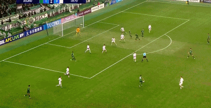 18' Cao Yongjing a passé le ballon de la droite vers la surface de réparation et Ngadeu a tiré un tir près du point de douze mètres. L'angle était trop correct et a été confisqué