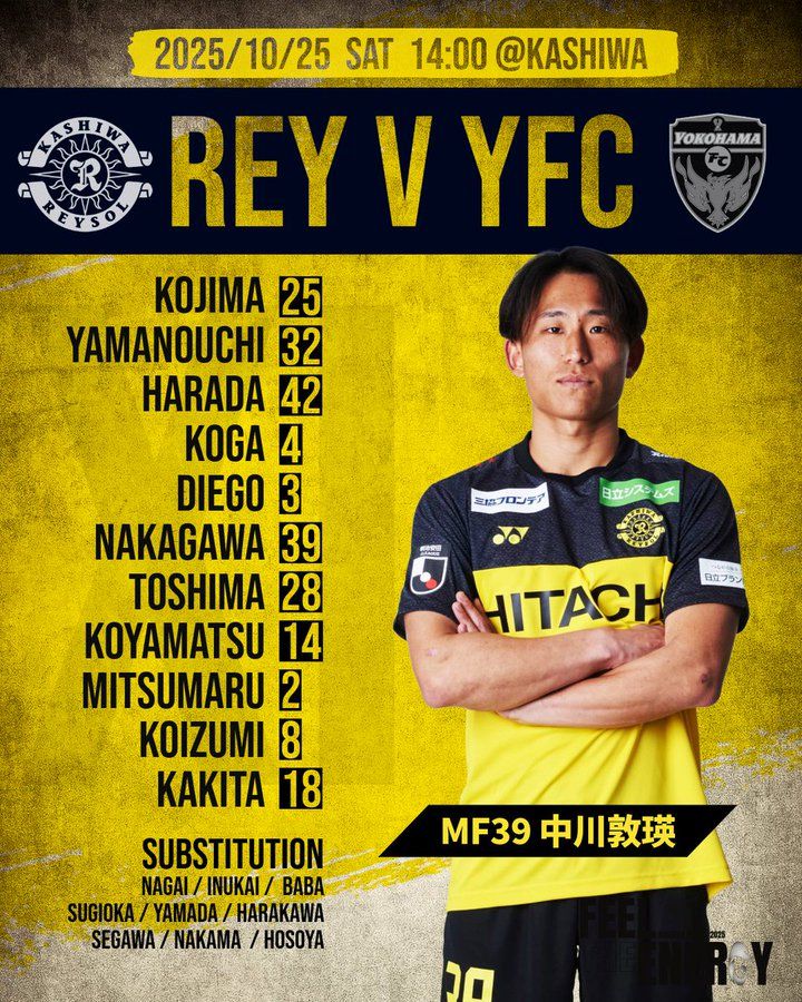 6686 Sports News le 25 octobre Lors du 35e tour de la Ligue professionnelle japonaise, l'équipe locale de Kashiwa Reysol a affronté le Yokohama FC. Avant le match, les deux équipes ont annoncé la composition de départ.