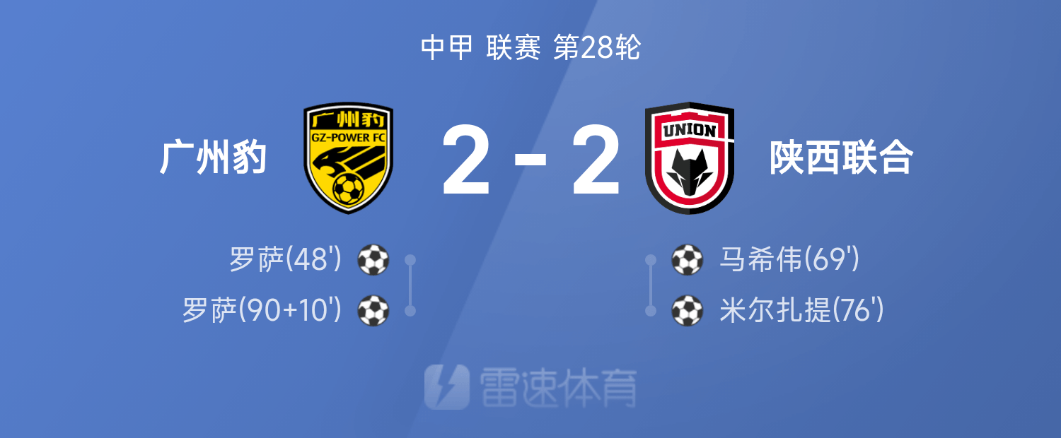Rapport du match de China League One : Rosa a marqué deux fois + un nul, les Guangzhou Leopards ont fait match nul 2-2 avec Shaanxi United