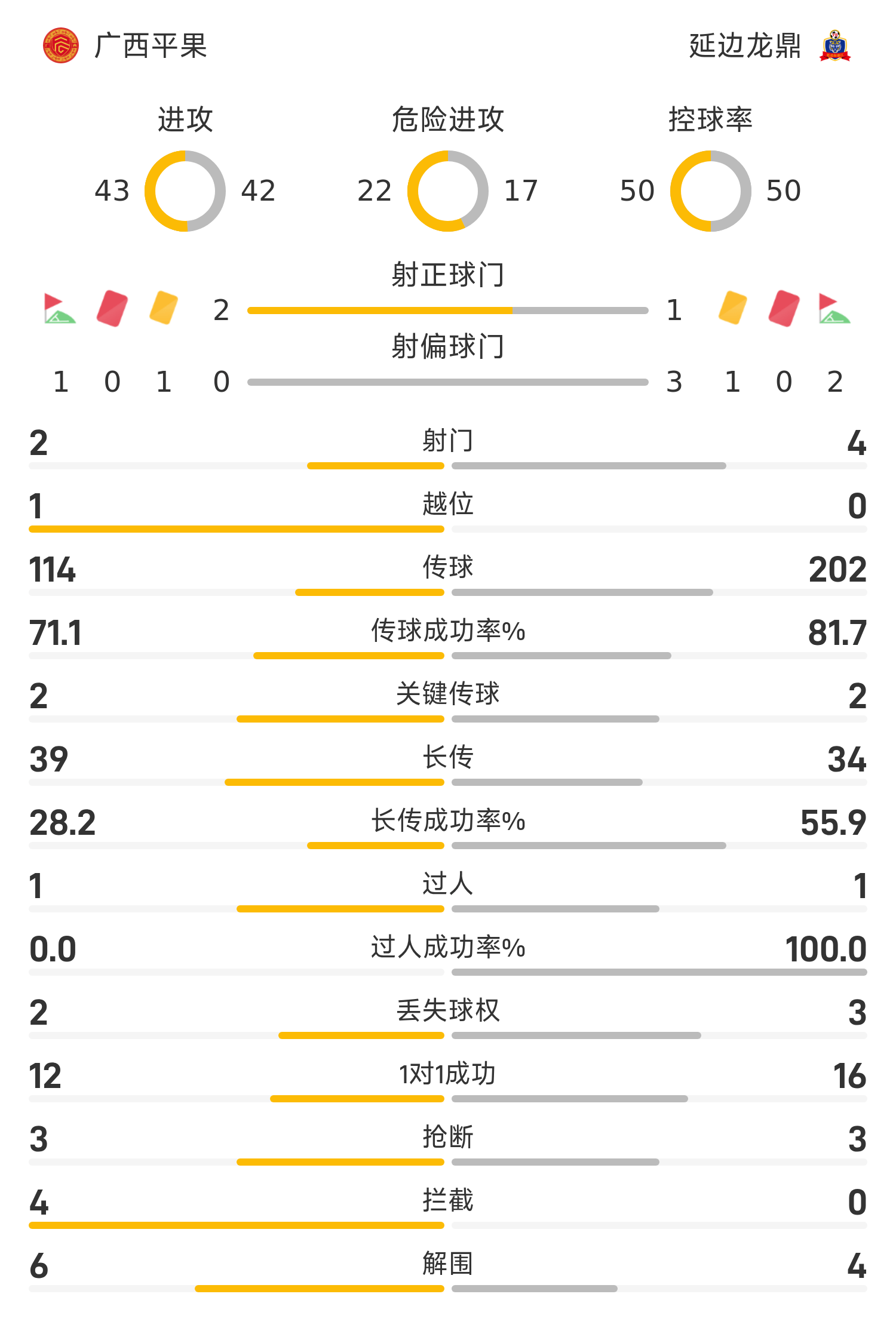 Mi-temps de China League One : l'impasse n'est pas encore sortie, Guangxi Pingguo 0-0 Yanbian Longding