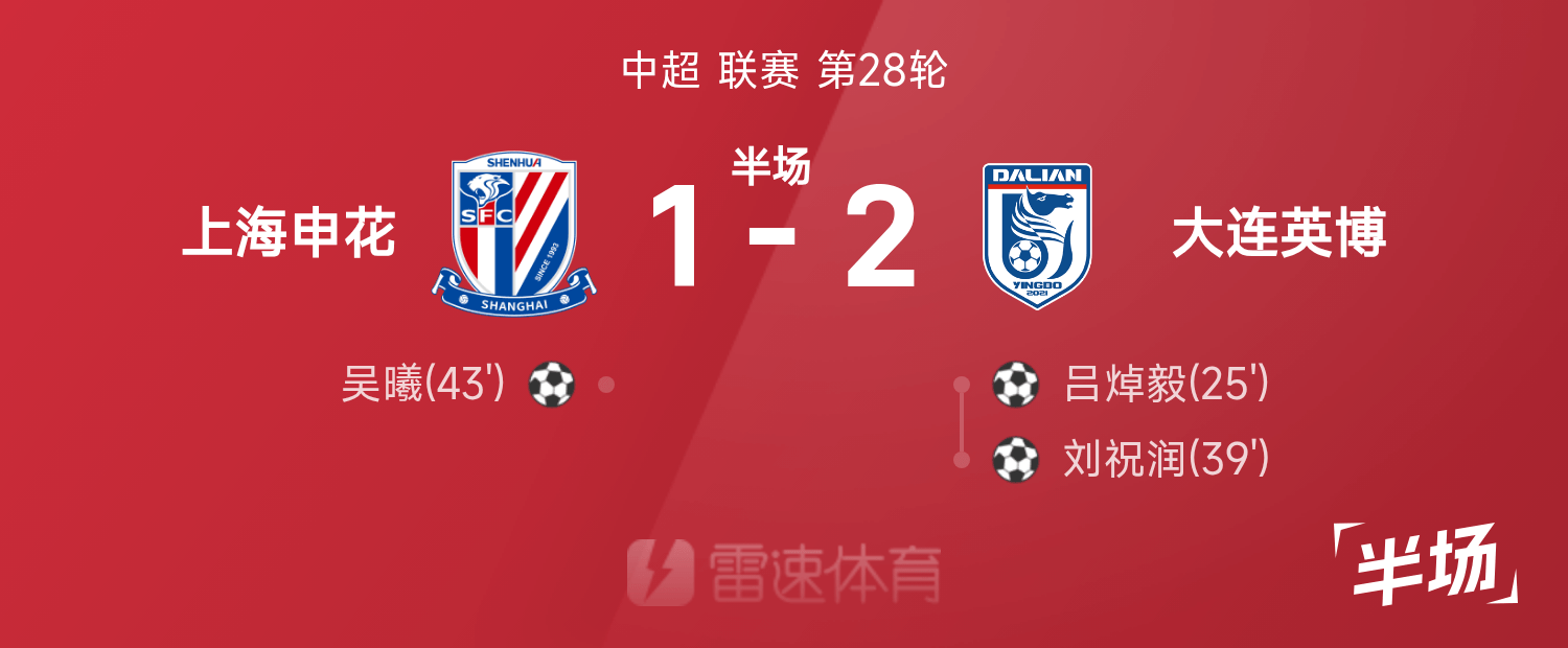 Mi-temps de la Super League chinoise : la vague mondiale de Lu Zhuoyi, la contribution de Liu Zhurun, Shenhua temporairement 1-2 Yingbo