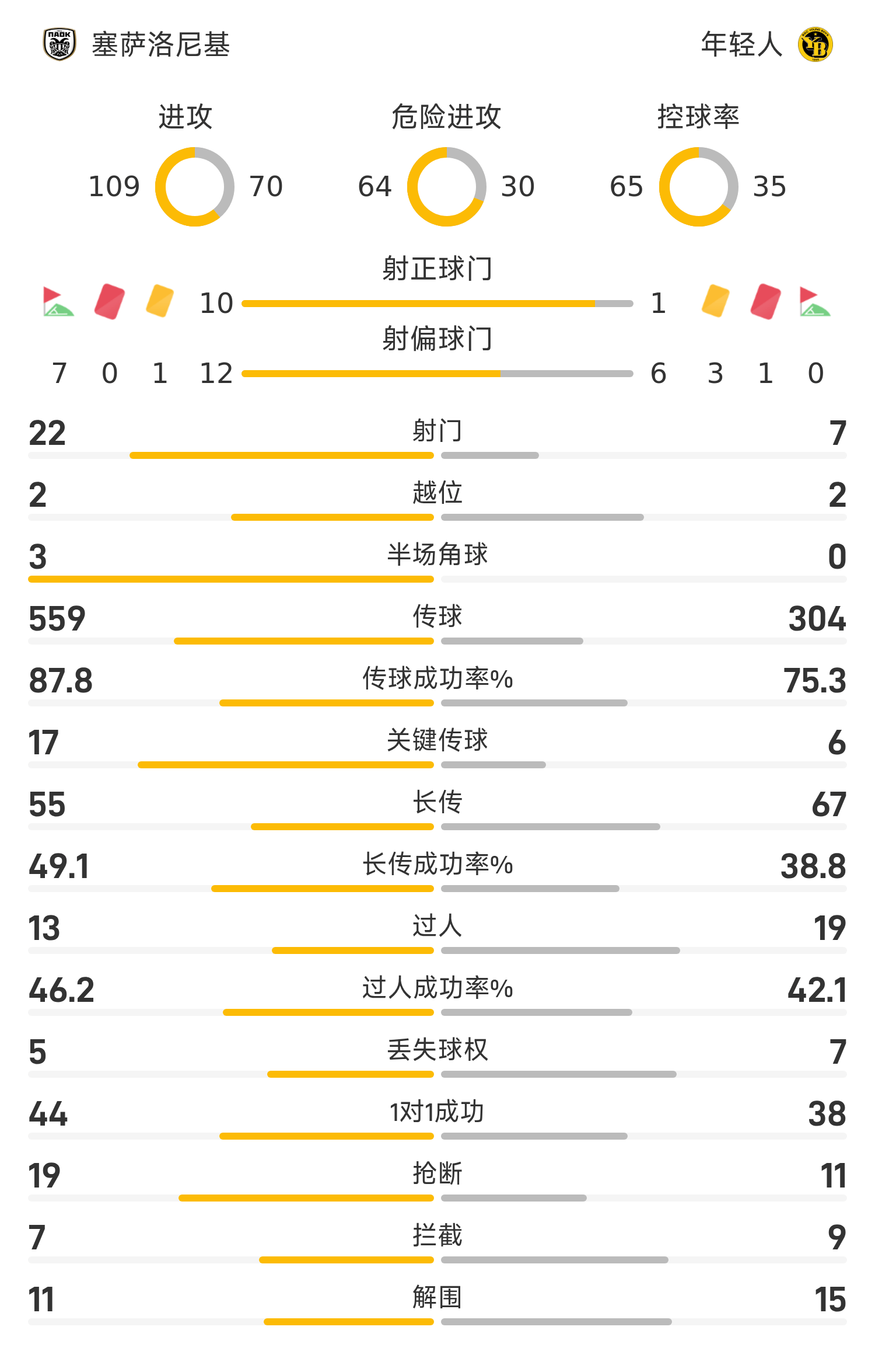 Liste de départ de Thessalonique: 99-Tesfis, 21-Baba, 3-Kenny, 4-Vogliako, 5-Mikelidis, 11-Freda (79'18-Ivanushec), 8-Meter, 77-Despodov (62'14-Zivkovic), 22-Bian Ko (66'27-Ozdov), 65-Constantelias (79'10-Perkas), 7-Jakumakis (79'9-Zaluf)