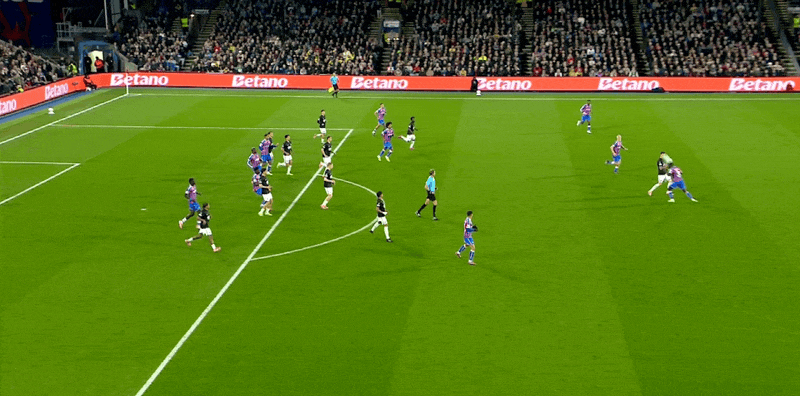 Liste de départ de Crystal Palace: 1-Henderson, 6-Guey, 5-Lacroix, 26-Richards, 19-Hughes (65'20-Wharton), 8-Lerma, 7-Sar (65'18-Kamada Daichi), 2-Munoz (86'17 -Klein), 3-Mitchell, 10-Pino (73'55-Devenney), 14-Matteta (86'12-Uche)
