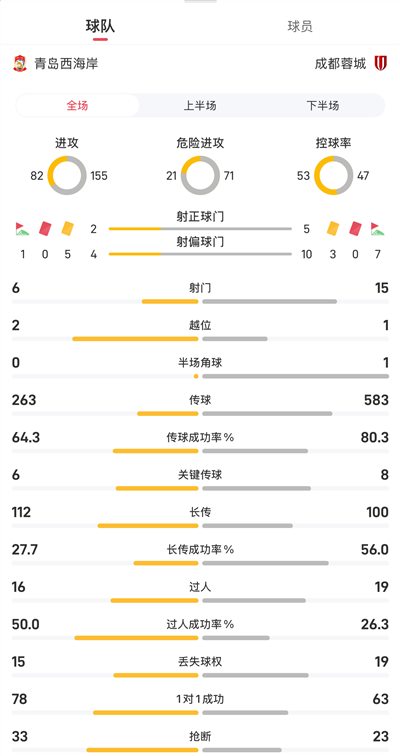 Statistiques complètes du match Côte Ouest contre Chengcheng: 6-15 buts marqués, taux de dribble 53% -47%