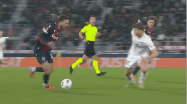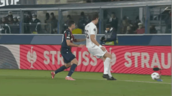 59' Il n'y a pas beaucoup de façons ! Bien que Bologne ait un joueur de moins, ils attaquent férocement, mais malheureusement il leur manque un buteur