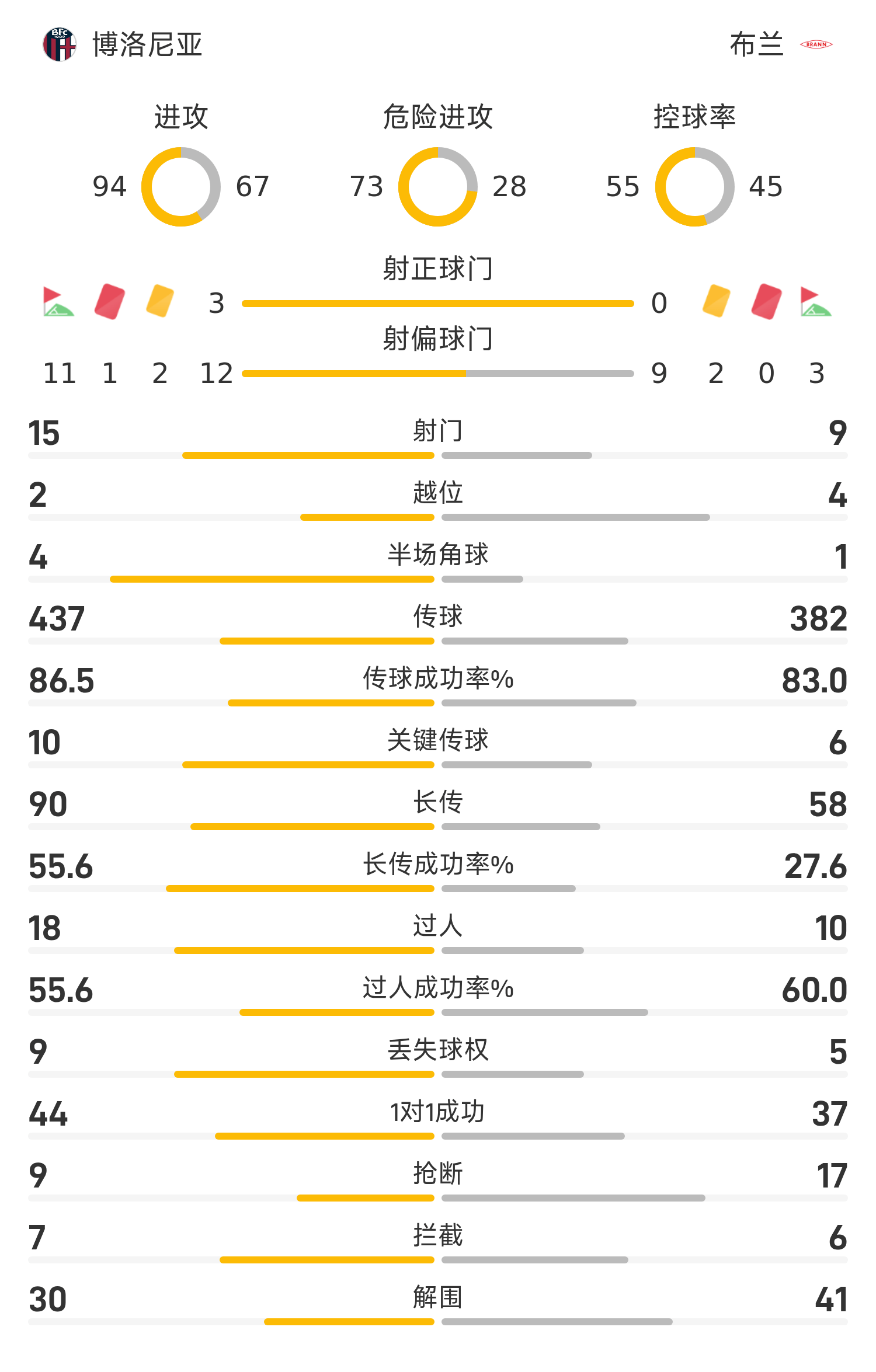 Rapport du match de la Ligue Europa : les deux équipes n'ont eu que trois tirs cadrés et Bologne à dix était à égalité avec Brannen 0-0