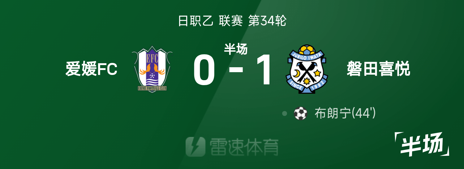 Mi-temps de la Ligue B japonaise : Browning marque, Ehime 0-1 Iwata Joy
