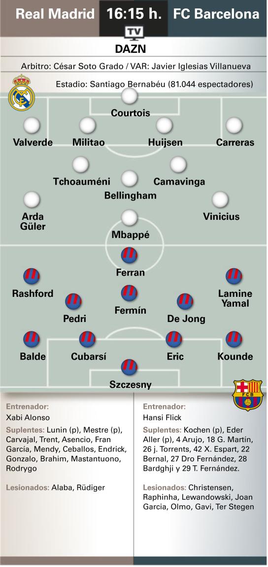6686 Sports, le 26 octobre, à 23h15 ce soir, heure de Pékin, se déroulera au Bernabeu le Clasico de la Liga. L'équipe du Real Madrid affronte Barcelone à domicile. Il ne s'agit pas seulement du match aller de la saison "El Clasico", mais aussi d'un dialogue direct pour la première place - si Barcelone gagne, le Real Madrid inversera la situation et grimpera au sommet du classement. Avant le match, "World Sports News" avait prédit la composition de départ des deux équipes.