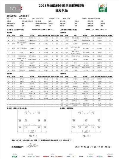 Liste de départ du Shandong Taishan: 14-Wang Dalei, 5-Zheng Zheng, 15-Luis Lopez (F), 11-Liu Yang, 33-Gao Zhunyi, 35-Huang Zhengyu, 8-Madruga (F), 19-Zeka (F), 38-Li Xiaoheng, 10-Kazaishvili (F), 9-Kresan (F)